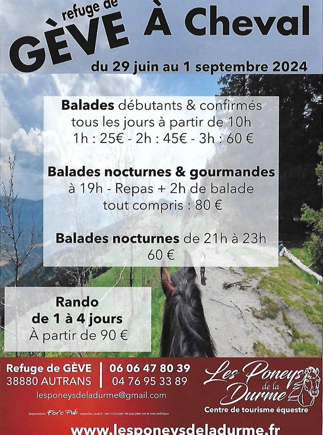 - Randonnées équestres : de nombreux itinéraires, accueil des équidés (parc, foin, eau déjà prêts à