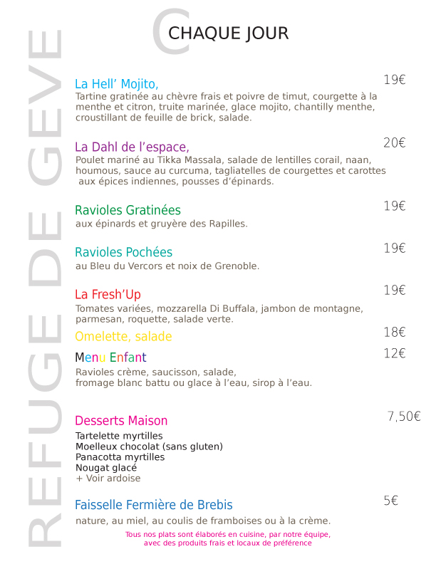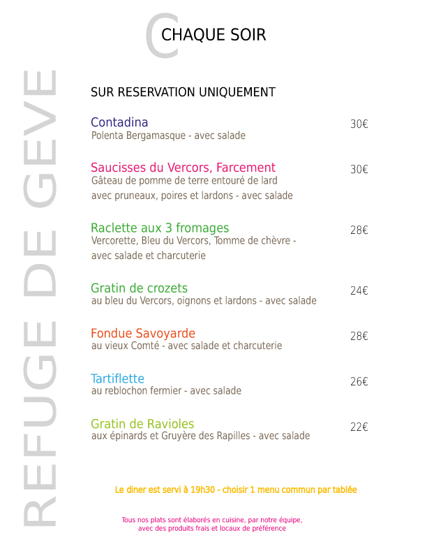 - le soir en hiver : en mode refuge nous vous proposons une carte plus traditionnelle